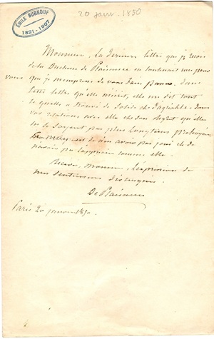 Créateur : Barbé de Marbois, Sophie ; duchesse de Plaisance (1785-1854)Date : 20 janvier 1850 -