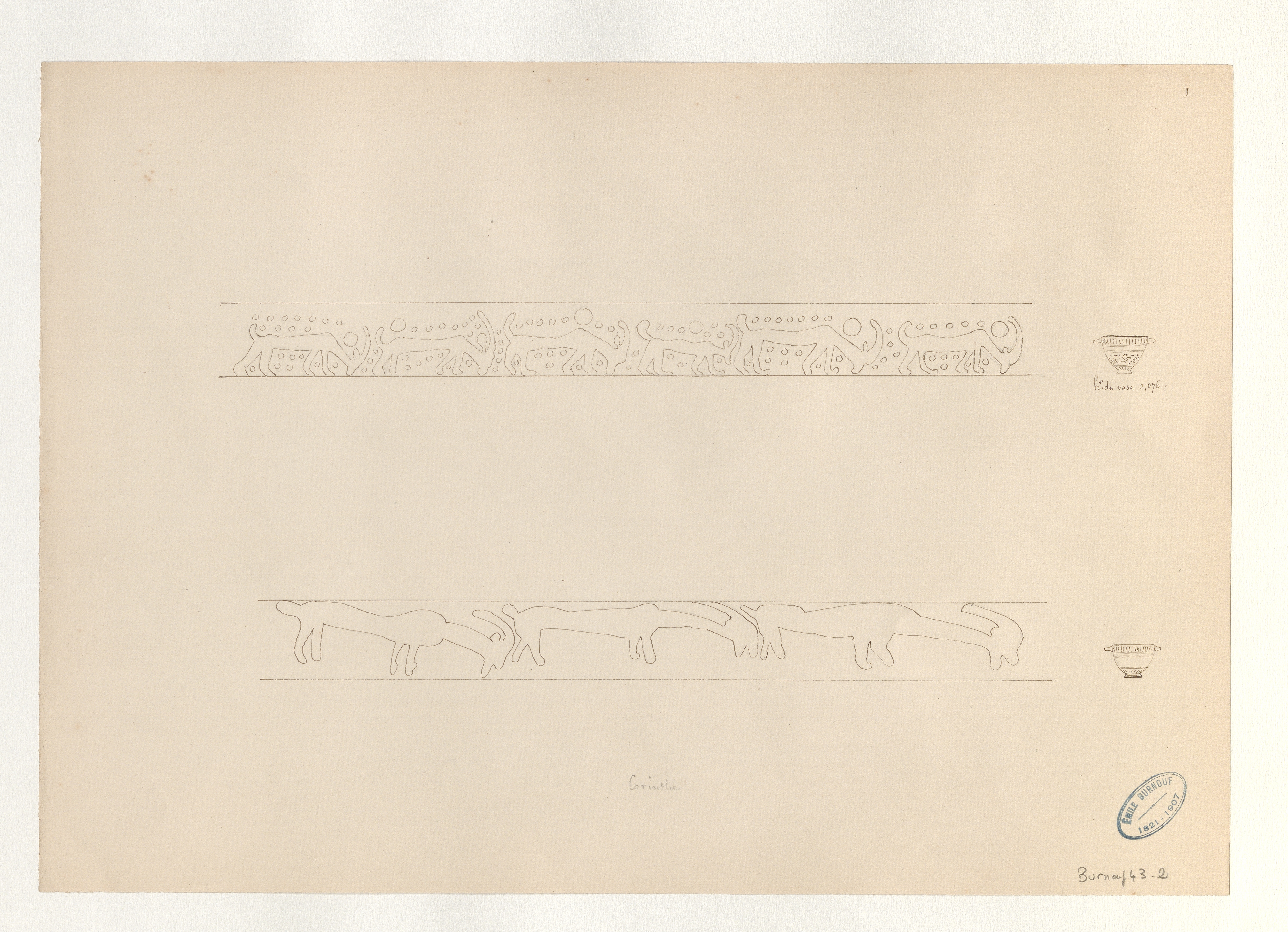 Créateur : Burnouf, Émile (1821-1907)Date : 1800/1899Planches de dessins au trait avec leur légende en regard. 518 dessins et appendice de 95 autres dessins. Deux dessins supplémentaires f. 64 et 65. -
